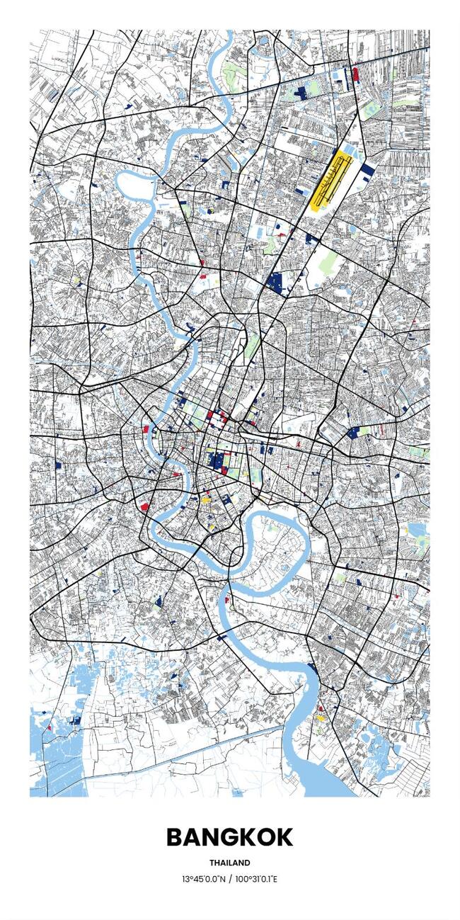 TITIMAP 专注于销售城市地图系列装饰画,全球任意城市可定制,曼谷更是充满特色。曼谷有大皇宫、玉佛寺等著名景点,融入装饰画后尽显热带风情。