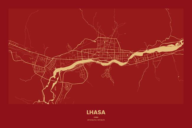 TITIMAP 专注销售城市地图系列装饰画,全球任意城市可定制,拉萨当然也不例外。